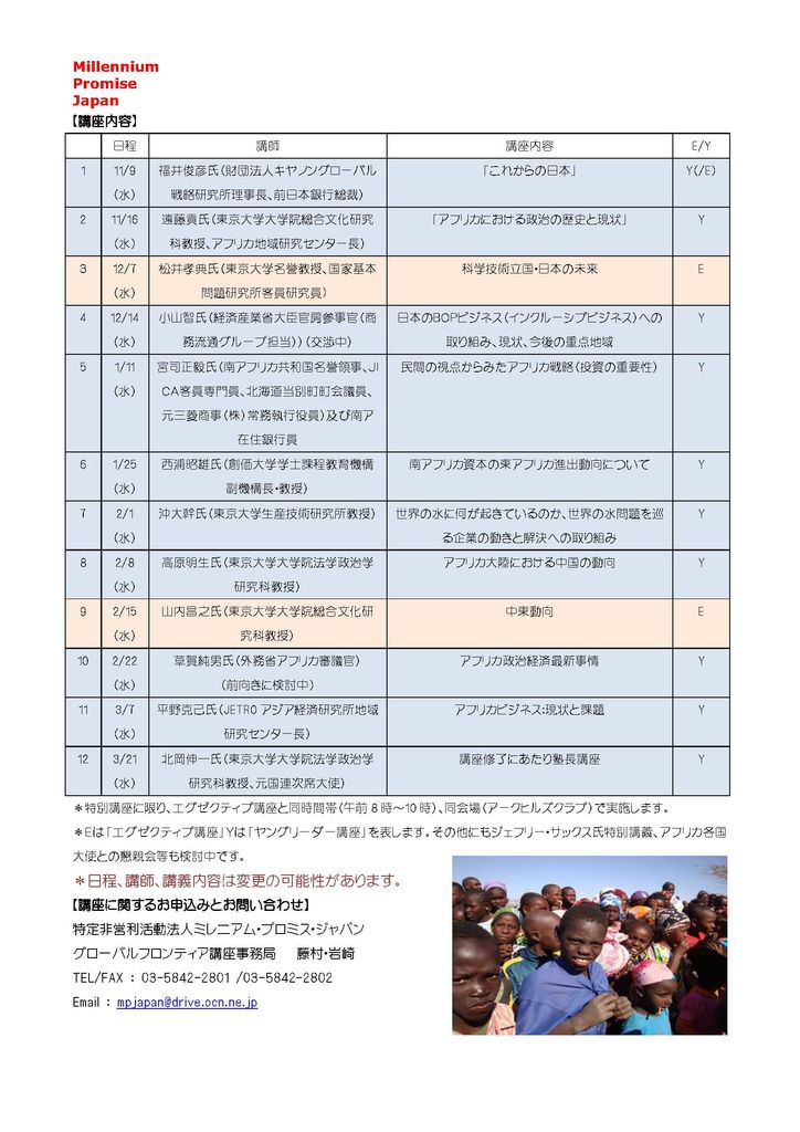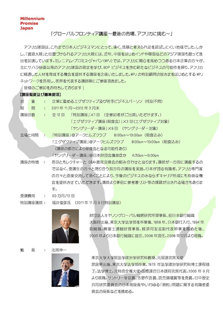 研修講座「グローバル・フロンティア講座〜最後の市場アフリカに挑む」(塾長:北岡伸一)だそうです。
