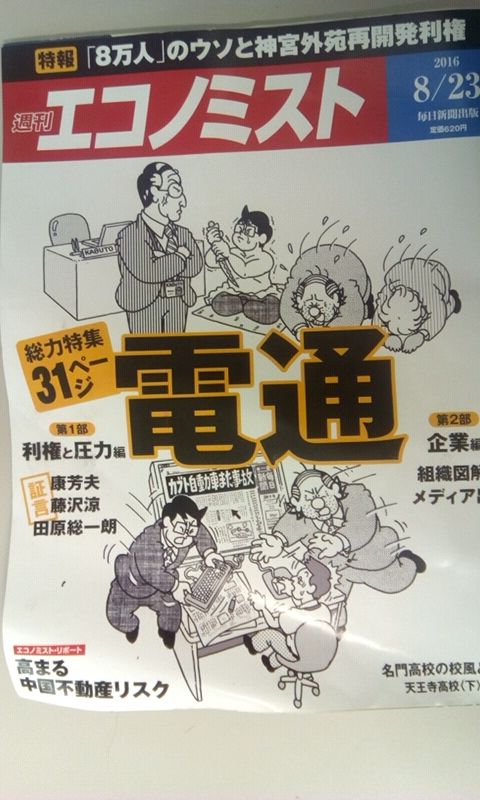 そうそう、もちろん電通以外の記事も結構興味深かかった(片山元知事、鳩山元首相など)