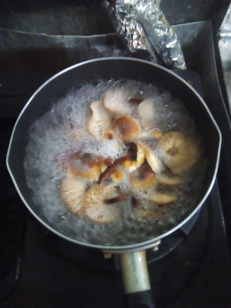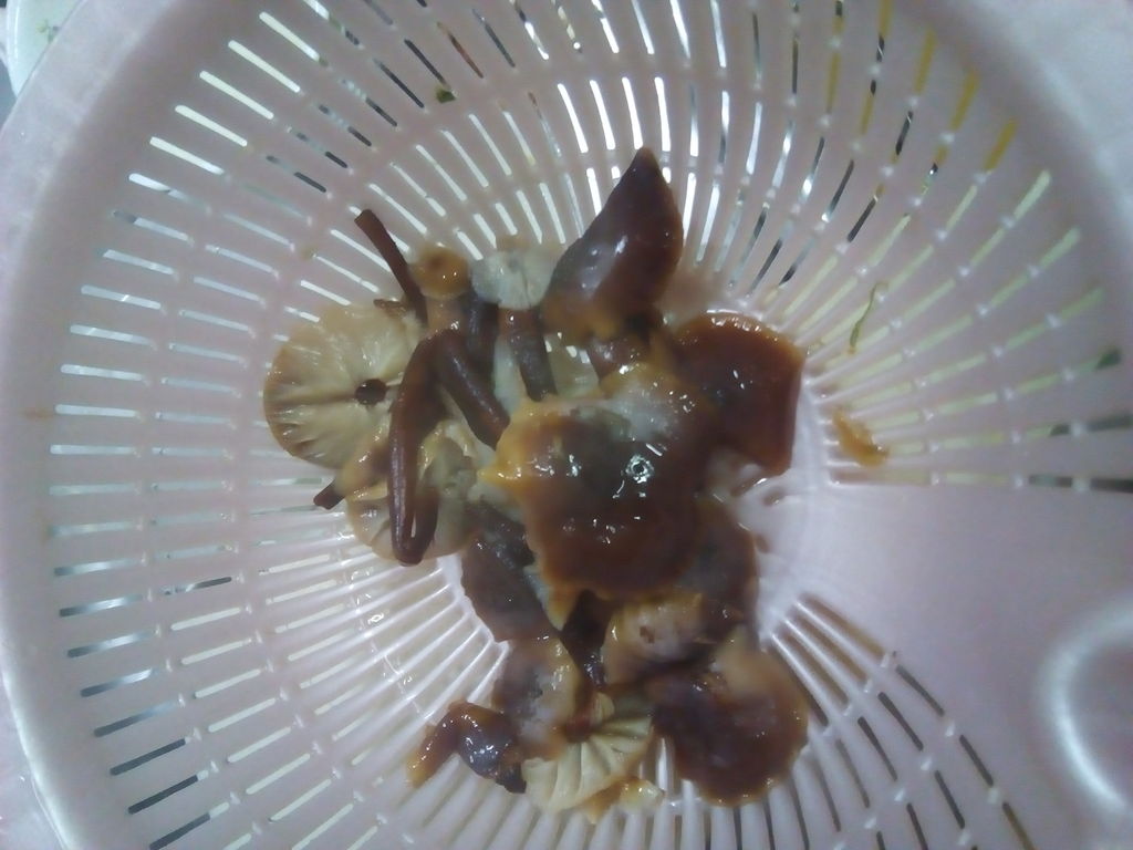 エノキだとのご示唆をいただき、あとは自己責任なので、湯がいてポン酢で(笑)