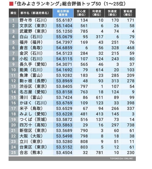 「住みよさランキング2020」全国総合トップ50 | 住みよさランキング | 東洋経済オンライン | 経済ニュースの新基準