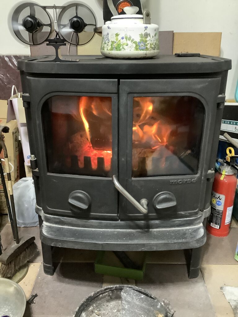 家でストープ焚いて夕食。